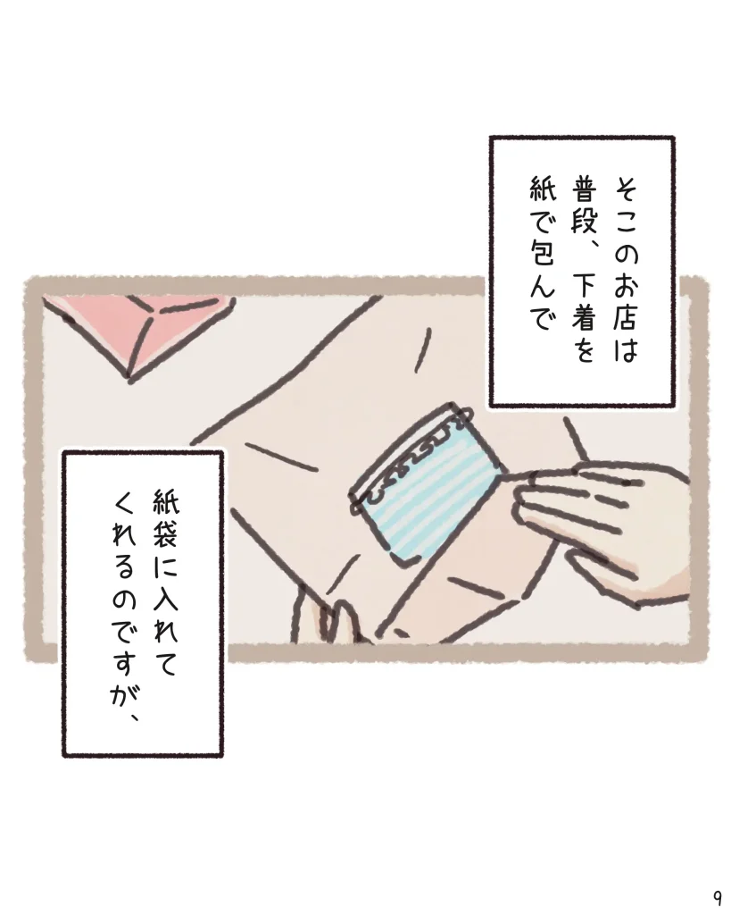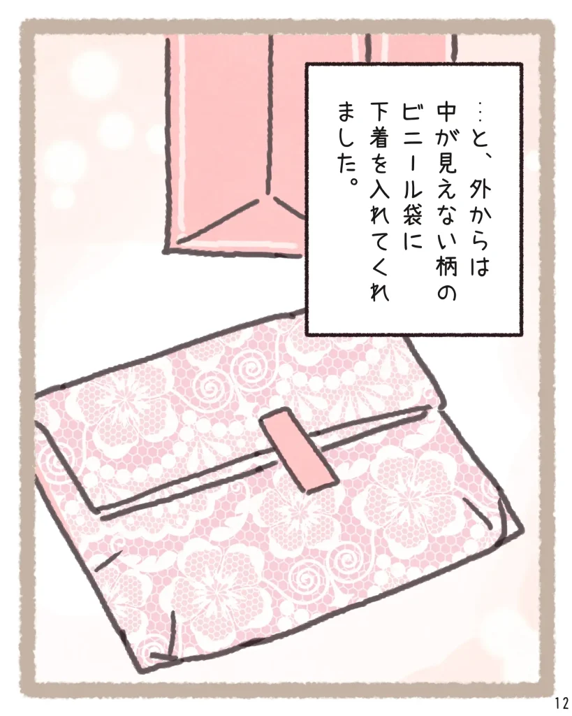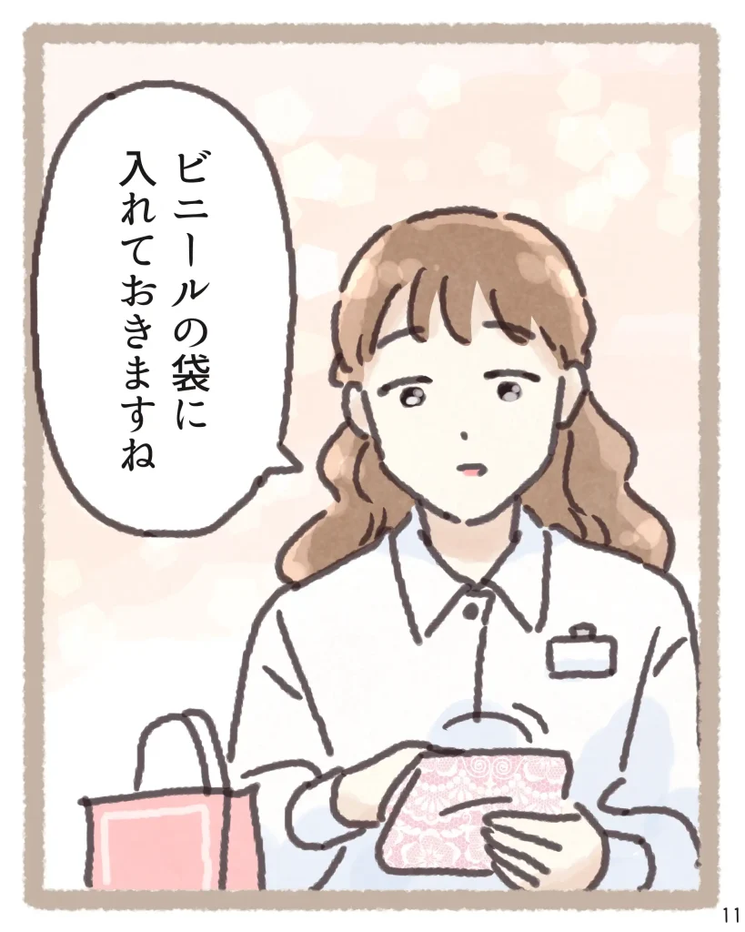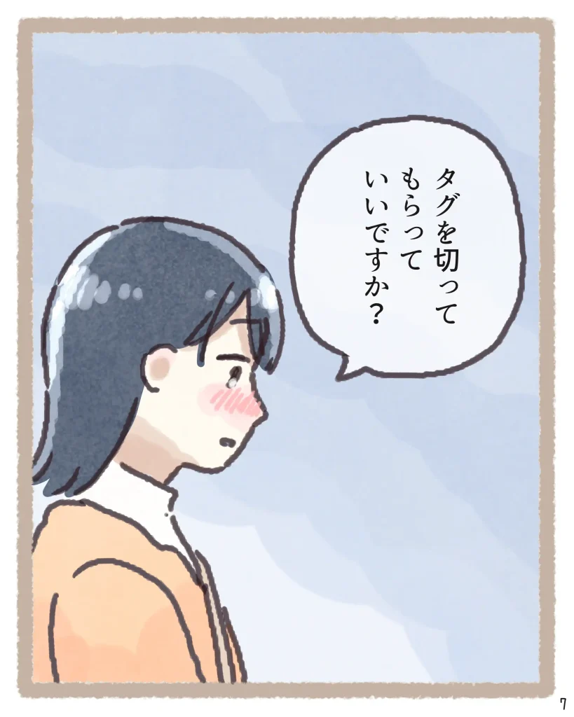 そんな時に「タグを切って」という一言だけで状況をサッと察し、外から見えないよう袋を二重にしてくれる配慮まで…。そのさりげない優しさに、読んでいるこちらまでホッとして温かい気持ちになりました。