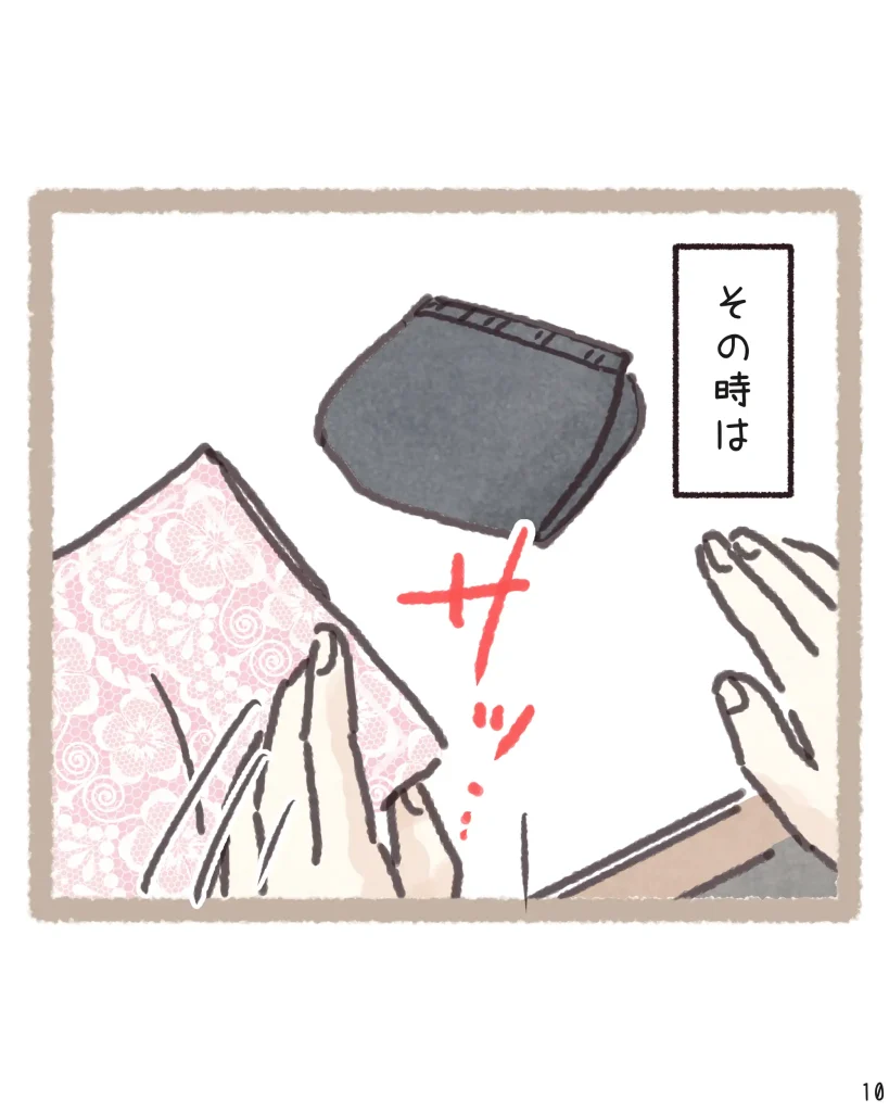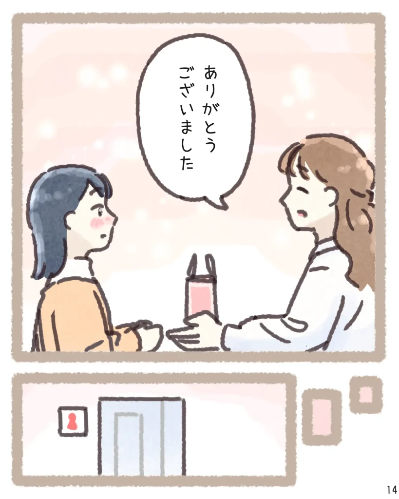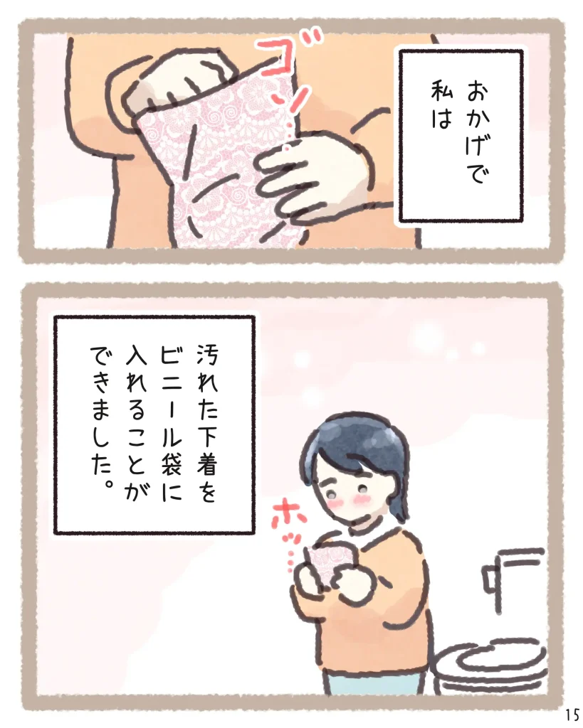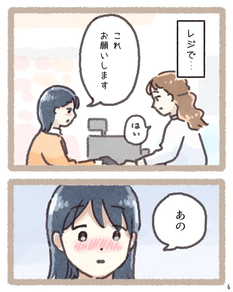 そんな時に「タグを切って」という一言だけで状況をサッと察し、外から見えないよう袋を二重にしてくれる配慮まで…。そのさりげない優しさに、読んでいるこちらまでホッとして温かい気持ちになりました。