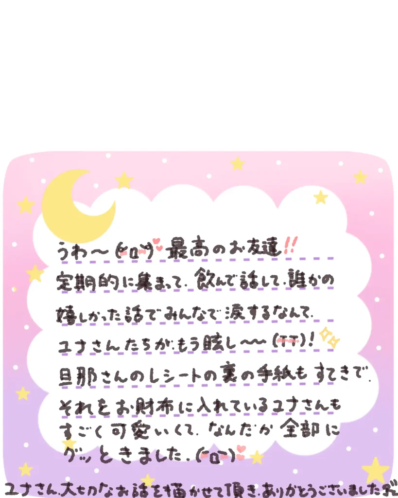 ユナさん、こんなに温かくてキラキラしたお話を届けてくれてありがとうございます。こちらまで幸せな気持ちをおすそ分けしてもらいました。